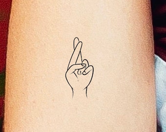 Fingers Crossed Crosshatch Temporary Tattoo Sticker Ohmytat